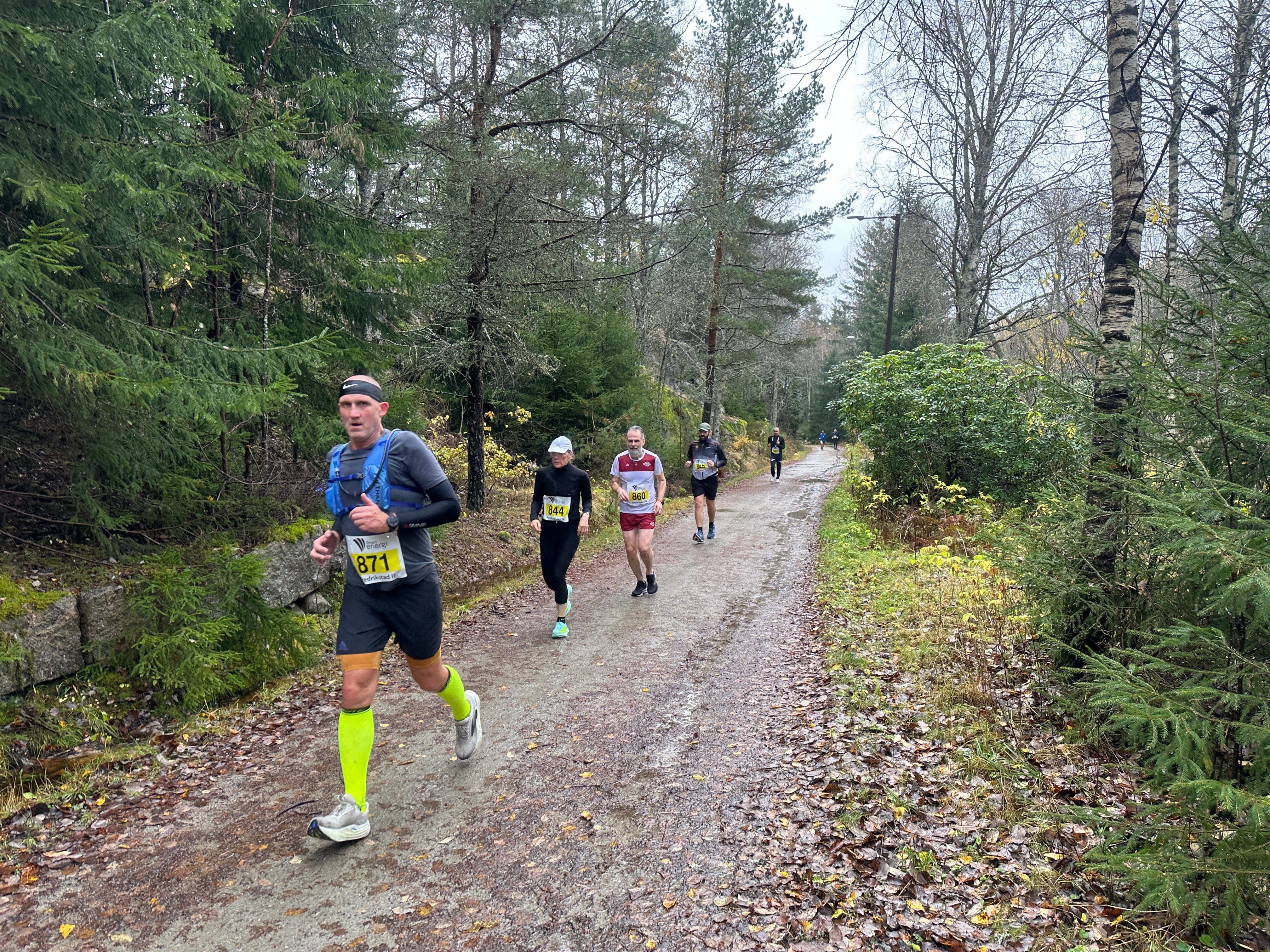 Løperne er på vei gjennom Fredrikstadmarka, noen kilometer fra passering og målgang.