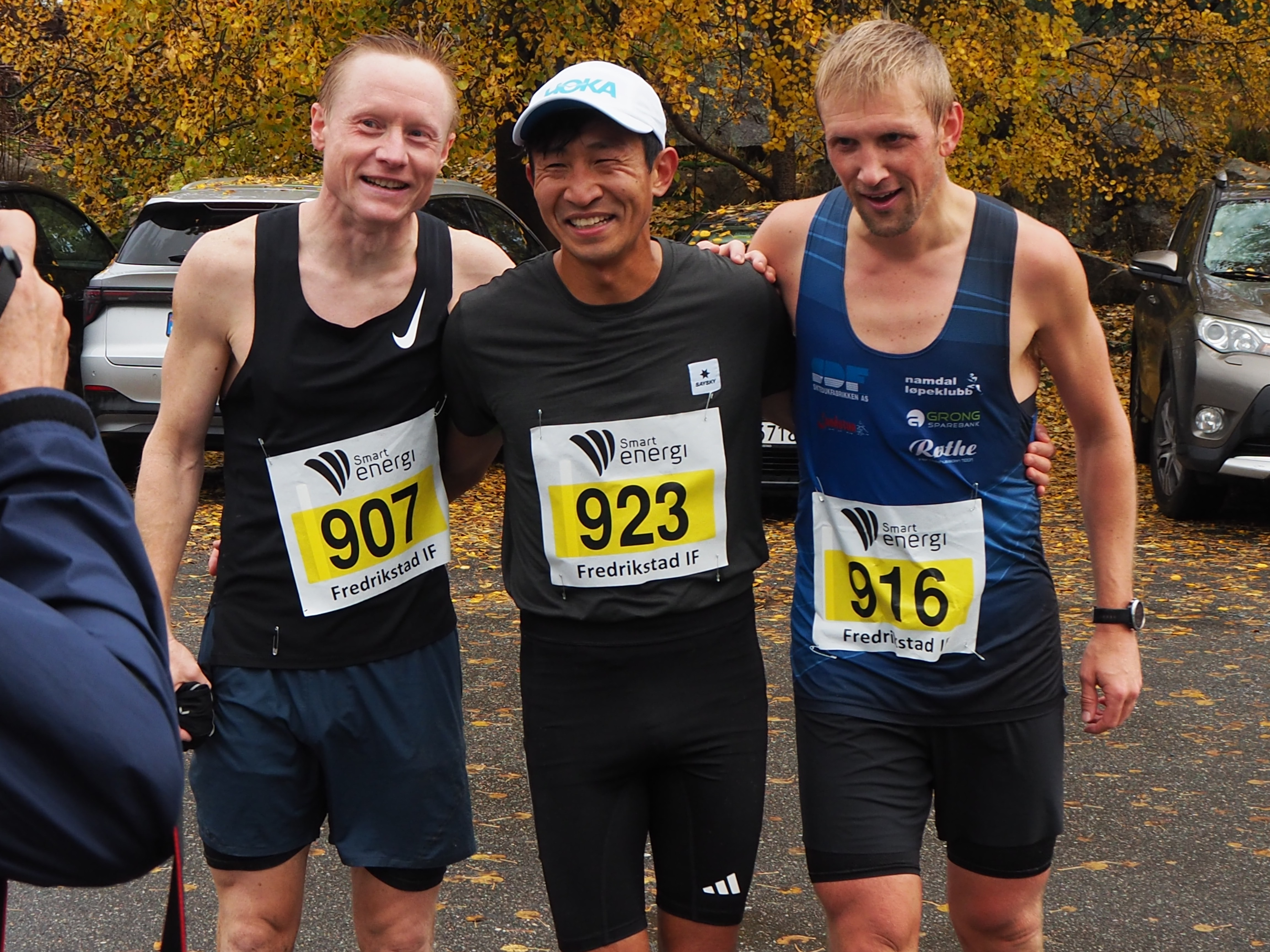 På bildet ser vi de 3 beste blant herrene. Håkon Haug Urdal (923), Rygge IL, vant på 2:43:58. Kim Bertheussen (907), Kristiansand S, tok andreplassen med 2:45:03. Espen Nordbrøden Fiskum (916), Namdal Løpeklubb / Multiconsult, tok tredjeplassen med tiden 2:45:20