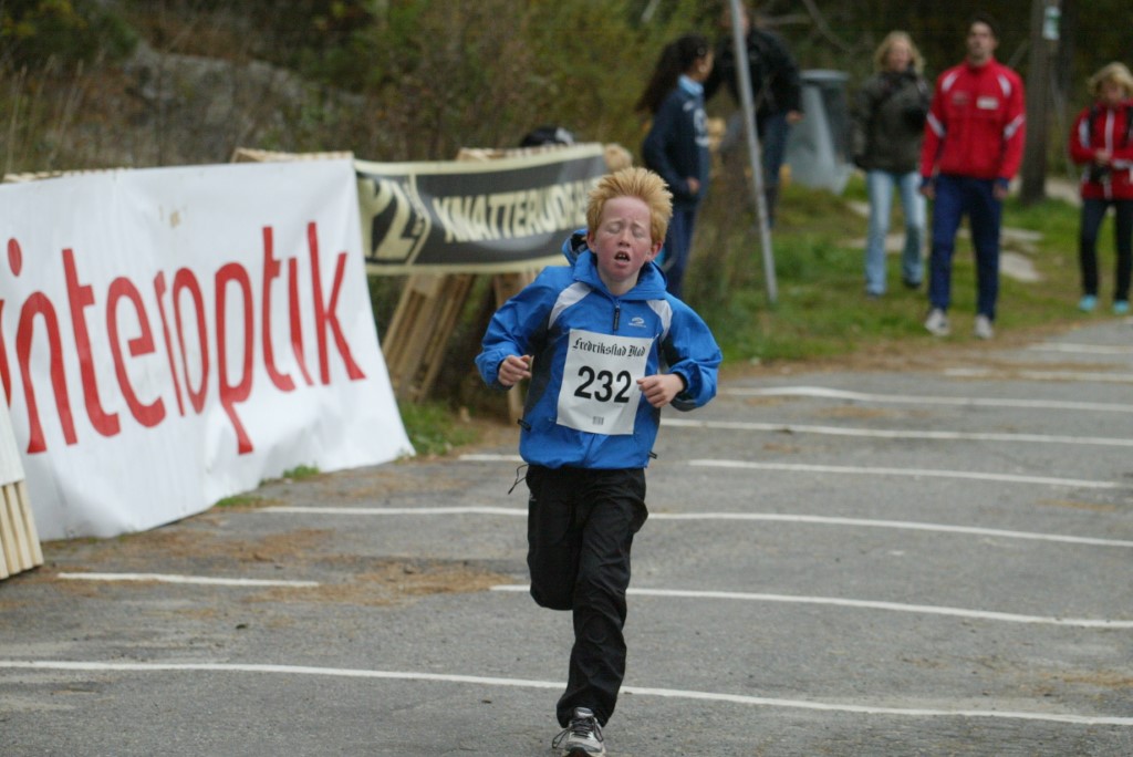 Stian Pedersen fra Skogstrand mot mål. Han ble beste gutt på 1 km med tiden 3:56. På plass nummer 2 kom Vegard Røed fra FIF med tiden 5:14.